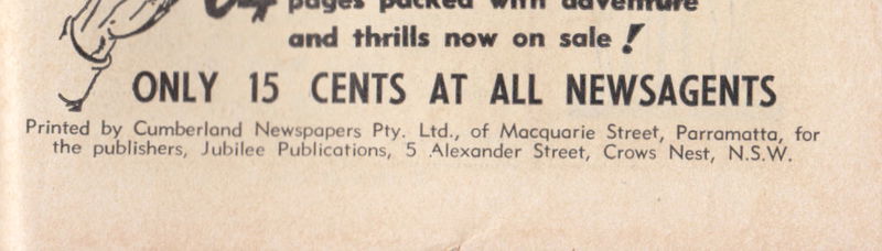 Printed by Cumberland Newspapers Pty. Ltd., of Macquarie Street, Parramatta, for the publishers, Jubilee Publications, 5 Alexander Street, Crows Nest, N.S.W.