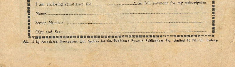 Printed by Associated Newspapers Ltd., Sydney for the publishers Pyramid Publications Pty. Limited 76 Pitt St., Sydney.