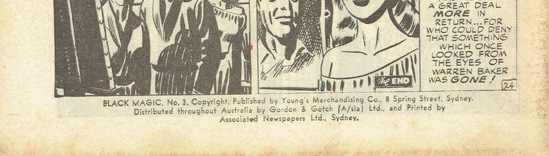 Black Magic, No. 3. Copyright. Published by Young's Merchandising Co., 8 Spring Street, Sydney. Distributed throughout Australia by Gordon & Gotch (A/sia) Ltd., and printed by Associated Newspapers Ltd., Sydney.