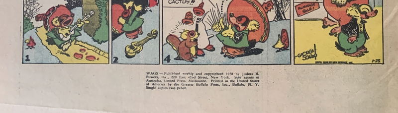 WAGS--Published weekly and copyrighted 1938 by Joshua B. Powers, Inc., 220 East 42nd Street, New York. Sole agents in Australia, United Press, Melbourne. Printed in the United States of America by the Greater Buffalo Press, Inc., Buffalo, N.Y. Single copies two pence.
